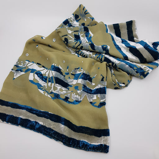 Liz LippiattOriginal price £42.00 - Original price £42.00Original price£42.00£42.00 - £42.00Current price £42.00| /'Chequers' Devore Silk D/SIDED - Olive- by Liz Lippiatt Materials - approx 80% silk and 20% rayon Dimensions - 110 X 7 cms Care note - dry clean ...