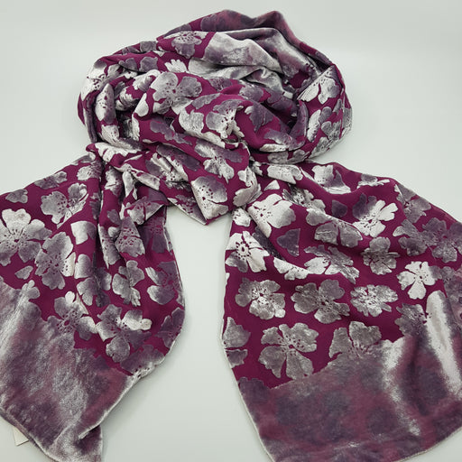Liz LippiattOriginal price £255.00 - Original price £255.00Original price£255.00£255.00 - £255.00Current price £255.00| /Handprinted dyed & devore silk velvet stole-japanese anemone by Liz Lippiatt Materials - silk and rayon velvet Colour - Raspberry/French navy ...
