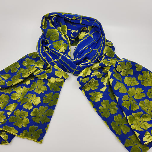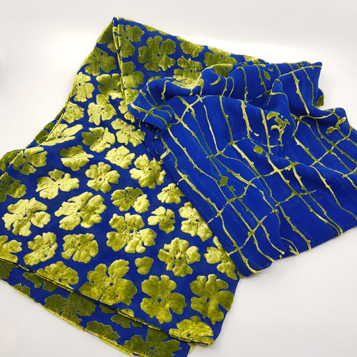 Liz LippiattOriginal price £255.00 - Original price £255.00Original price£255.00£255.00 - £255.00Current price £255.00| /Handprinted dyed & devore silk velvet stole - Wild rose by Liz Lippiatt Materials - silk and rayon velvet Colour - Lime Green/Blue Dimensions ...