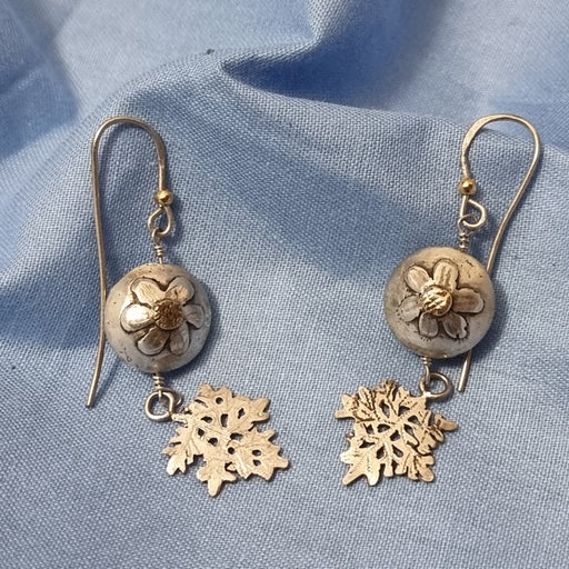 Elaine DayOriginal price £170.00 - Original price £170.00Original price£170.00£170.00 - £170.00Current price £170.00| /Earrings by Elaine Day Description - Silverbead with gold centered anemone flower and a leaf hanging below Materials - Sterling silver, 9ct go...