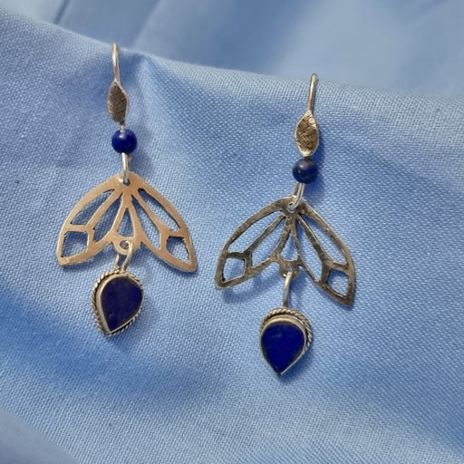 Elaine DayOriginal price £145.00 - Original price £145.00Original price£145.00£145.00 - £145.00Current price £145.00| /Earrings by Elaine Day Description - Open leaf pattern with a lapis lazuli bead above and a inverted lapis lazuli tear drop below Materials - ...
