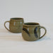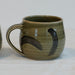 Stoneware, dark green with black decoration shaped to fit your hand.