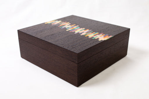 Kevin StamperOriginal price £132.00 - Original price £132.00Original price£132.00£132.00 - £132.00Current price £132.00| /Trinket box in dark fumed oak and mixed colour marquetry Dimensions - 8 x 8 x 7 cm Material - Fumed Oak/Dyed Sycamore