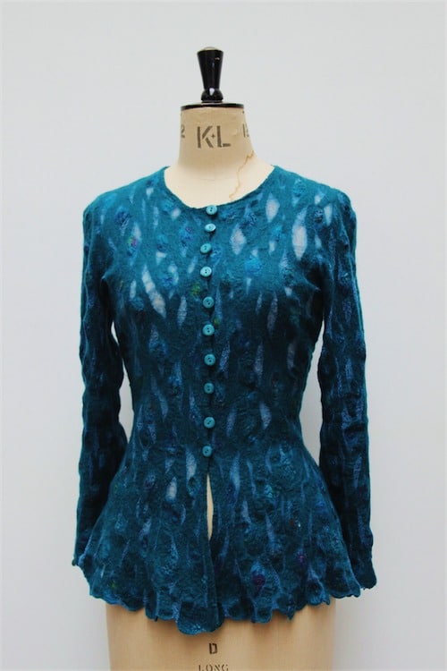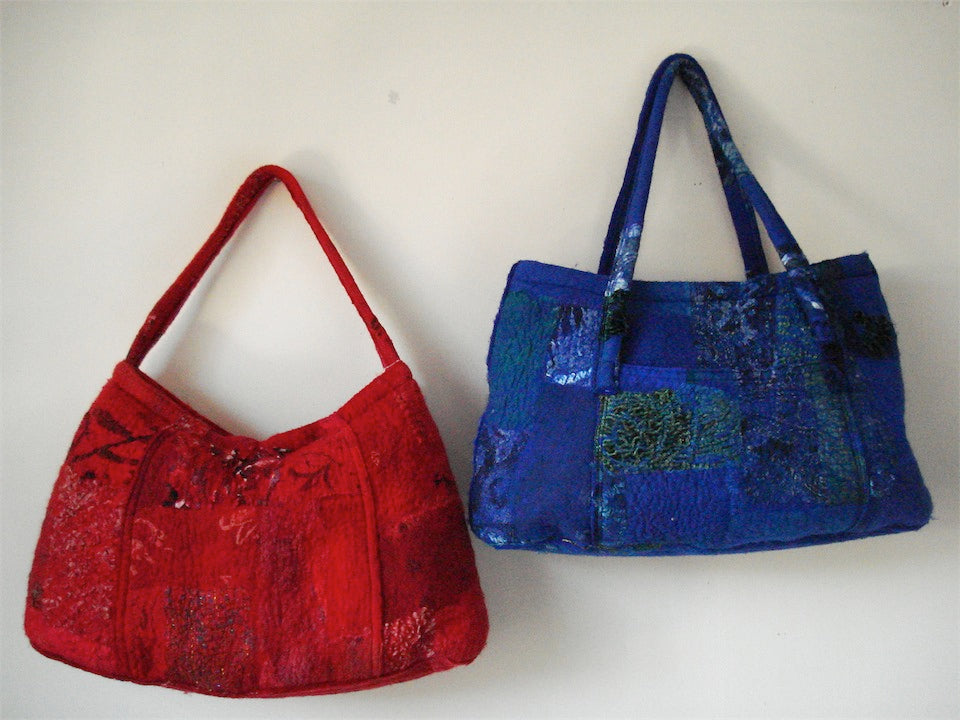 My current collection includes a unique range of fine nuno-felted seamless tops and jackets, textured silk chiffon and merino scarves, delicate couture lampshades, a range of day and evening bags and elegant corsages.