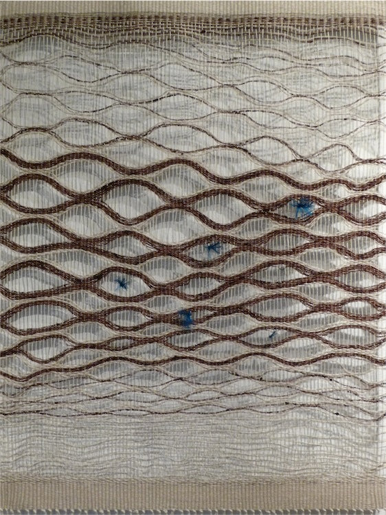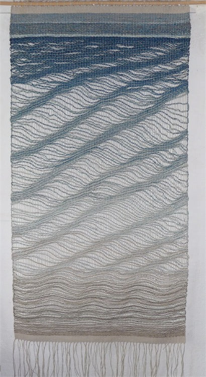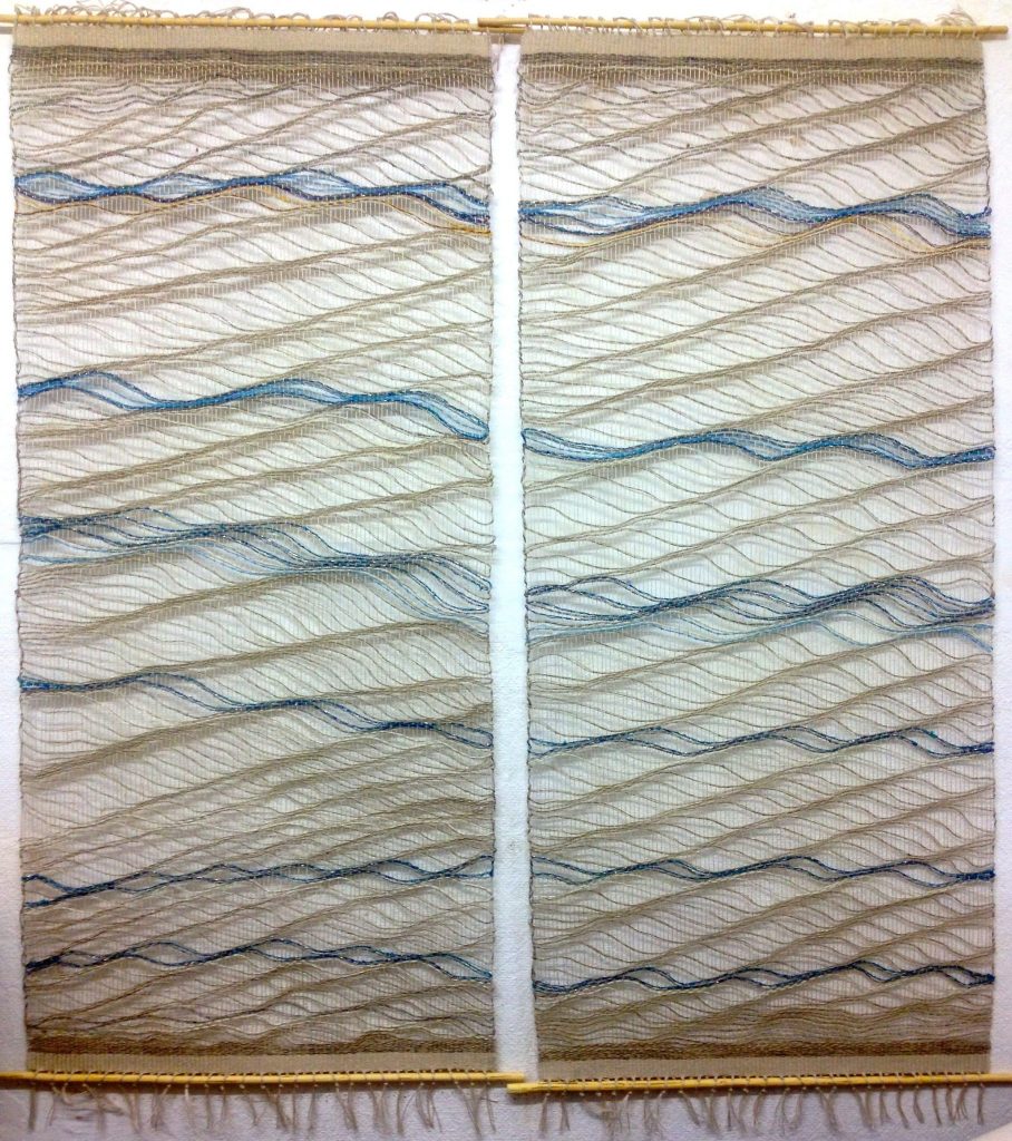 I tend to balance the woven image with the painted one as one can create very different effects using threads. I am weaving to create shadows as these images represent not only what is seen but also that which is felt. The waves seen in nature, and the waves of emotion!
