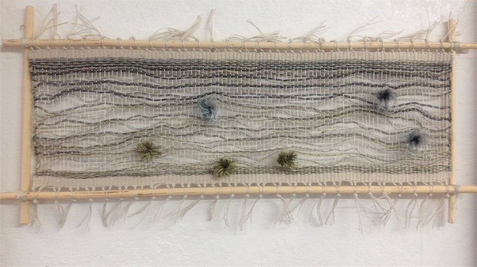 I am at present focusing on weaving, as an extension of my artwork, being fluent in print making and painting which I have pursued all my life equally with weaving. It seems quite natural then for me to express myself in this way. Of course my Parents have been a huge influence on my work, growing up under the loom, working along side them from early childhood, so weaving is part of my life, a way of life.