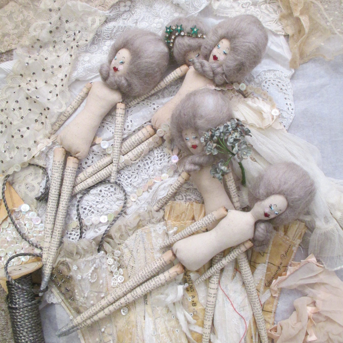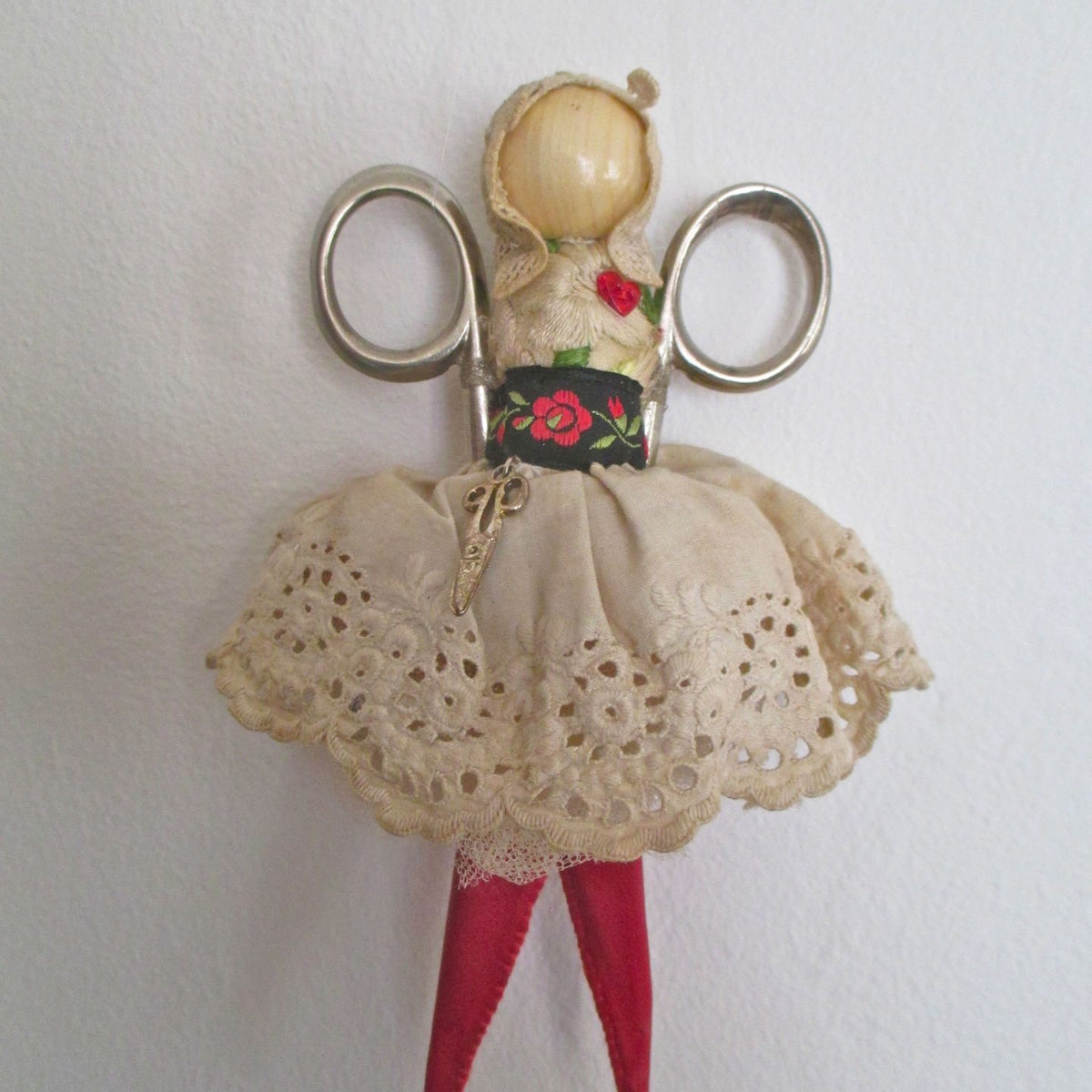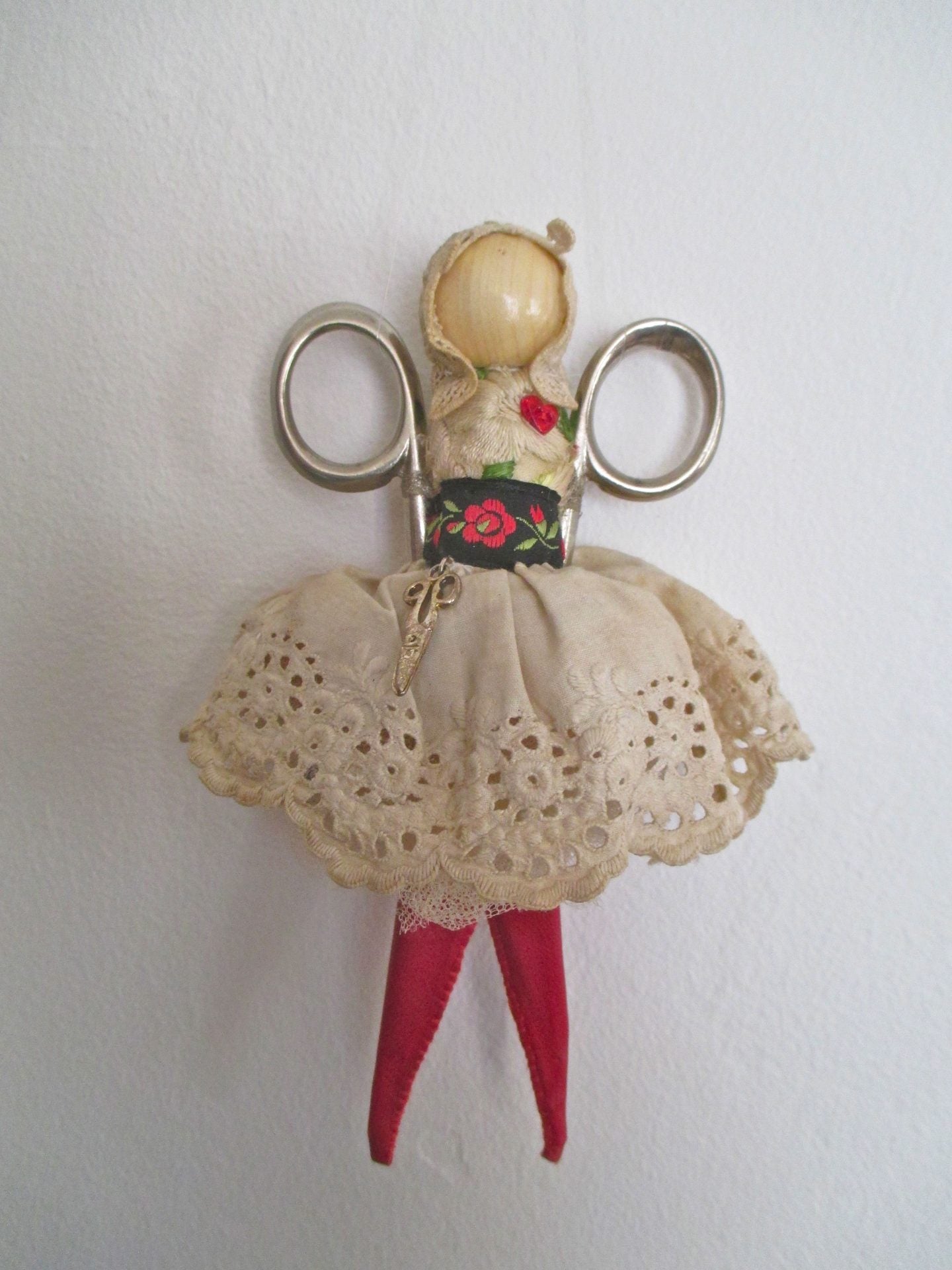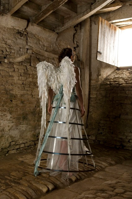Corinne is a mixed-media textile artist with a background in costume and stage design. Based in the textile studio at Stroud Valleys Artspace, she creates intricately stitched and embellished narrative pieces, exploring themes of freedom and constraint, ritual and romance. A red thread often runs through her work, in which you are likely to encounter paper corsets, caged wings, dancing shoes and roses made from the pages of old fairy tales. Often incorporated are the tools and motifs associated with the age-old practice of making textiles - scissors, spindles, pins and thimbles...