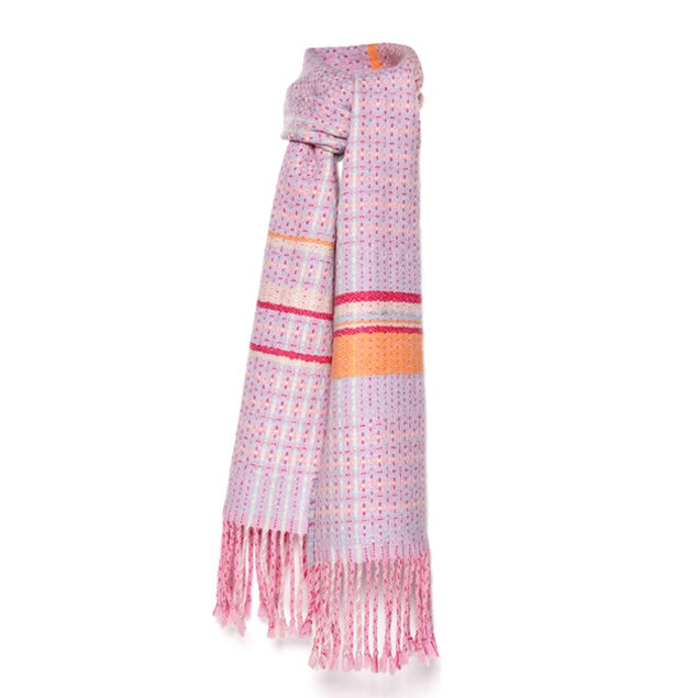 My playful style has been described as ‘Rebellious Nostalgia’. With a strong sense of colour and a passion for keeping traditional skills alive I create fabrics in harmony with the loom. From my design studio in rural Herefordshire, I handweave fabric for my growing collections of scarves. Inspiration is drawn from traditional handcrafts such as patchwork and cross-stitch which I merge with contemporary geometric patterns and bold colour combinations.