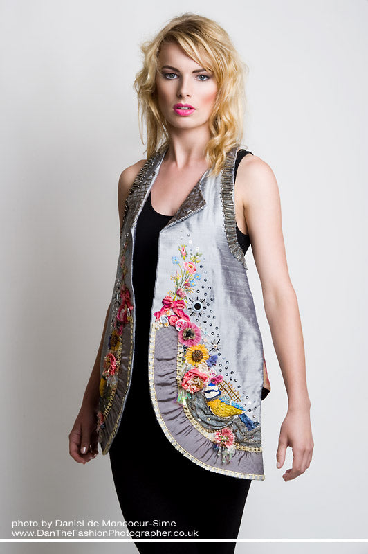 I then decided to specialise in embroidered bridal wear, winning the Embroidery category in the British Bridal Awards in 2001. I continued to improve my couture embroidery skills and studied for an MA at Bath Spa University, where I developed a range of embroidered jewellery incorporating my signature style of embroidery with vintage finds for my label “something old…something new”.