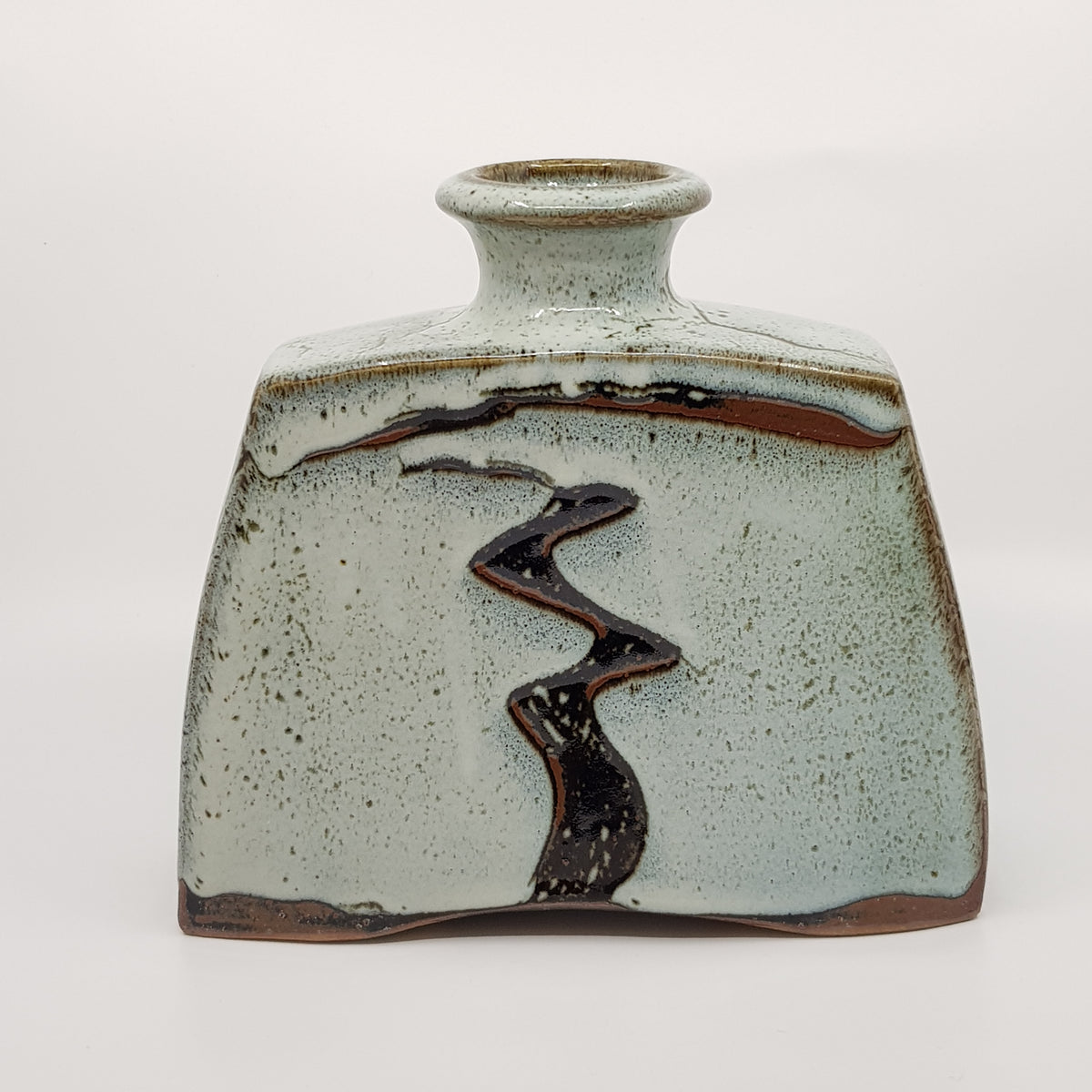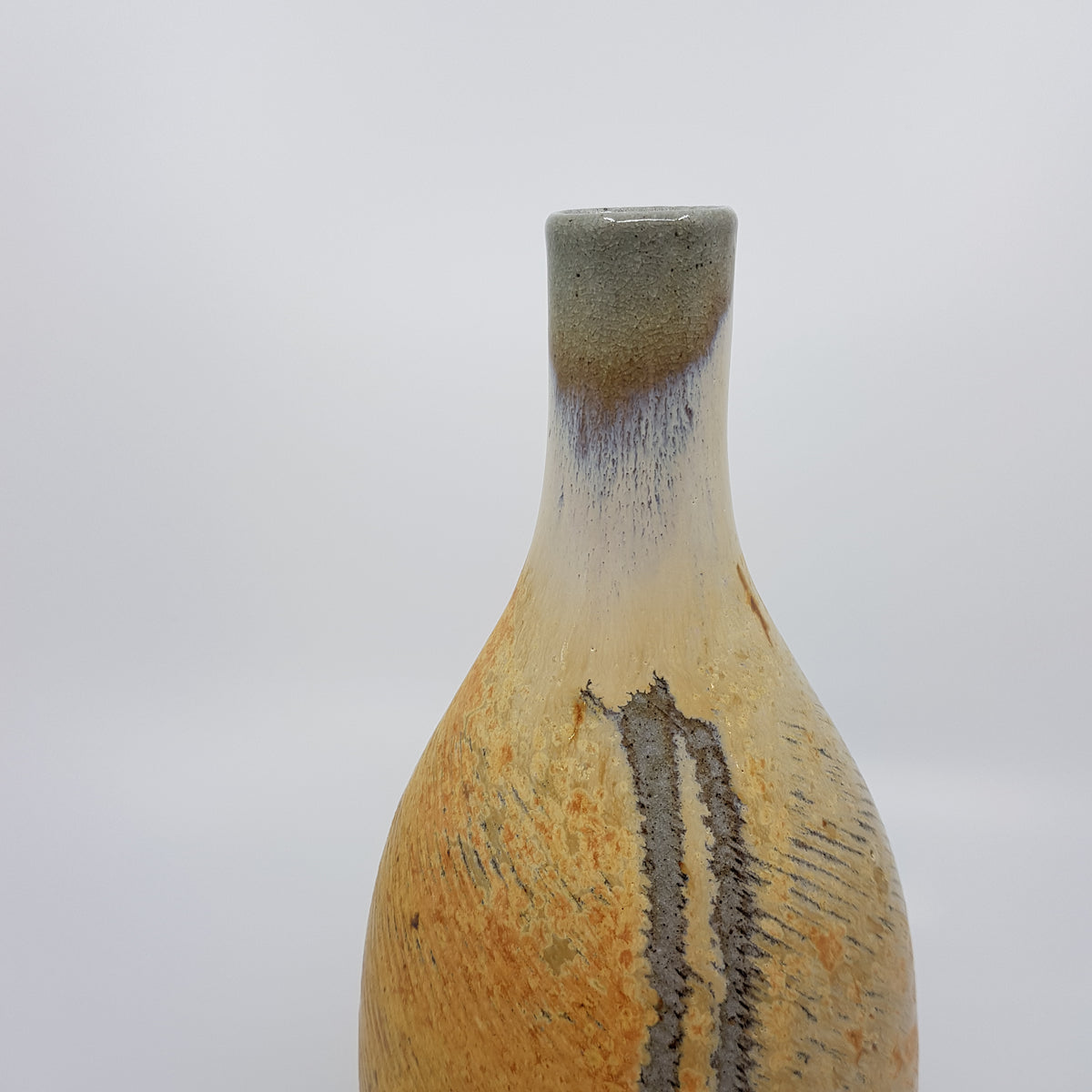 The pots are all hand-thrown from a blend of West-country clays, and are often altered while still soft on the wheel. They are fired twice, the first to biscuit (1000 degrees centigrade) and the second firing to stoneware (1300 degrees Centigrade) in a gas kiln. I use a long firing cycle as this brings out the subtlety and depth in my glazes.