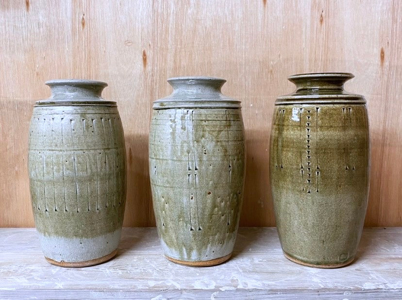 After working at Dove St Pottery with David Worsley, in 2016 I took an apprenticeship at Winchcombe Pottery, supported by Lisa Hammond’s Adopt a Potter charity, before being taken on as a full-time potter. I now make my own pots in a small workshop at home, still working in the same philosophy of well-made, functional pottery. I am particularly interested in ash glazes and take inspiration from the long line of stoneware potters who have followed in the Leach tradition.