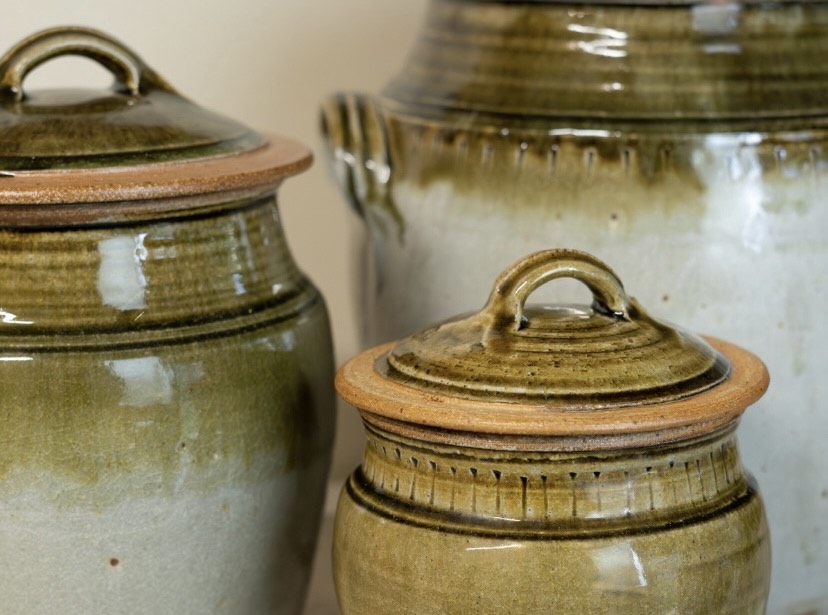 I love making pots to be used everyday, such as mugs, bowls, teapots and jars, as well as statement pieces like bottle vases and large dishes. I am particularly drawn to the effects of layers of ash glazes over handles, edges, ridges and marks in the body of the pot, over and above any elaborate decoration.