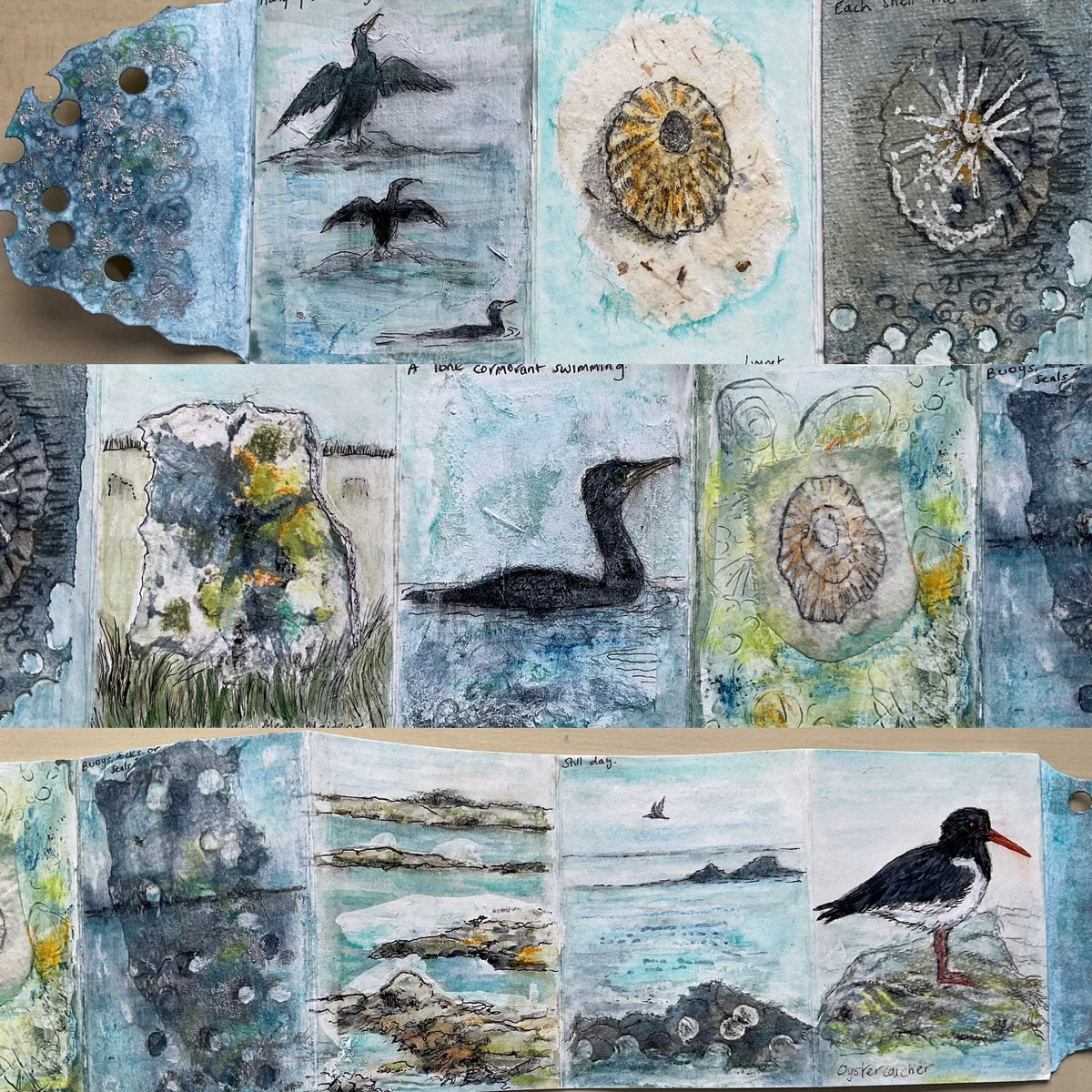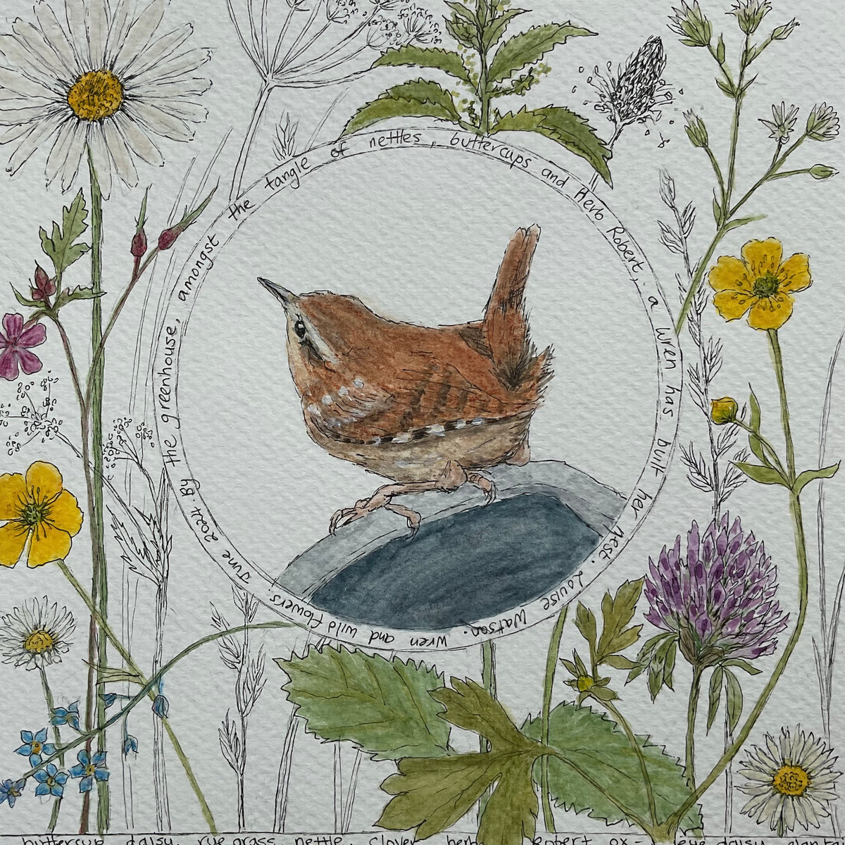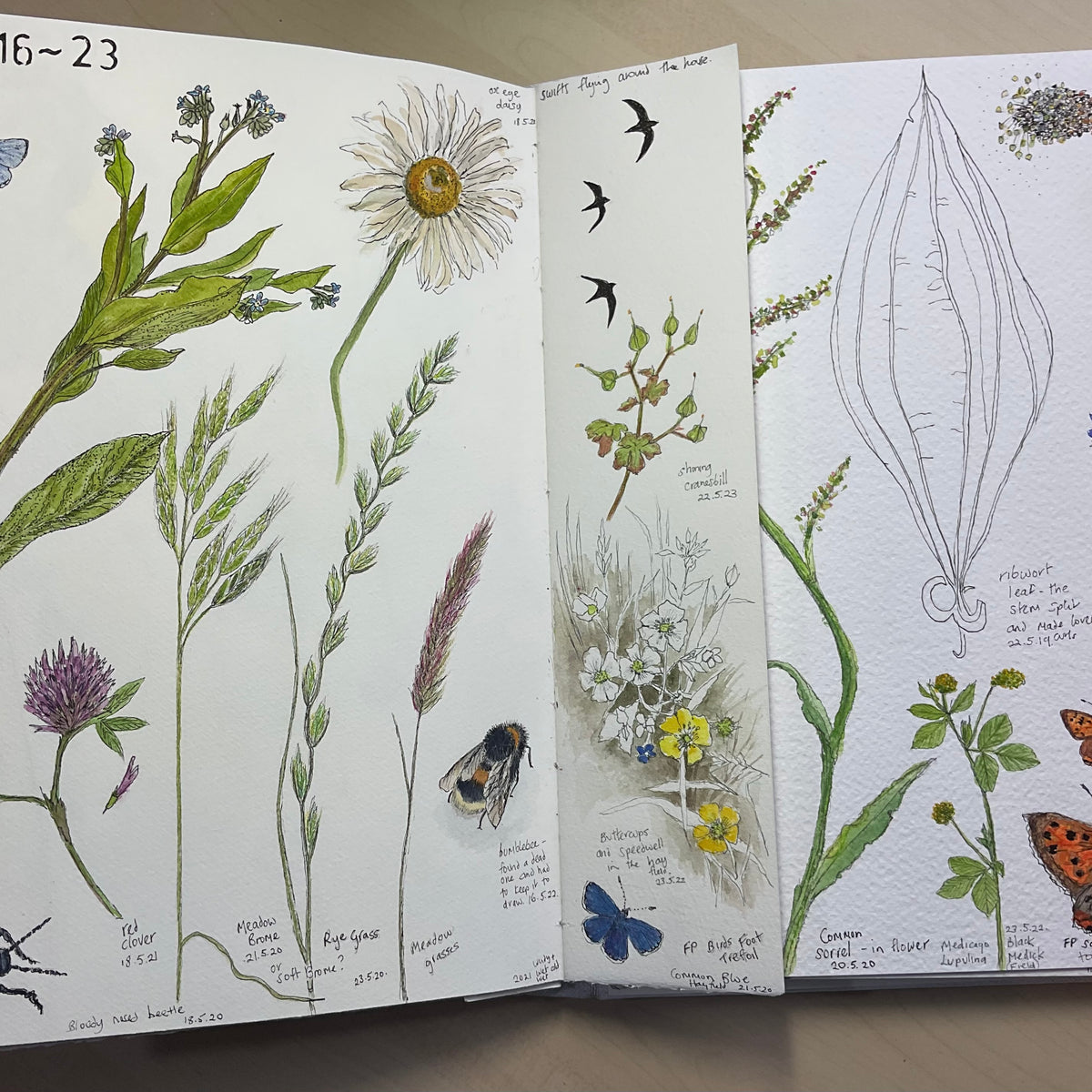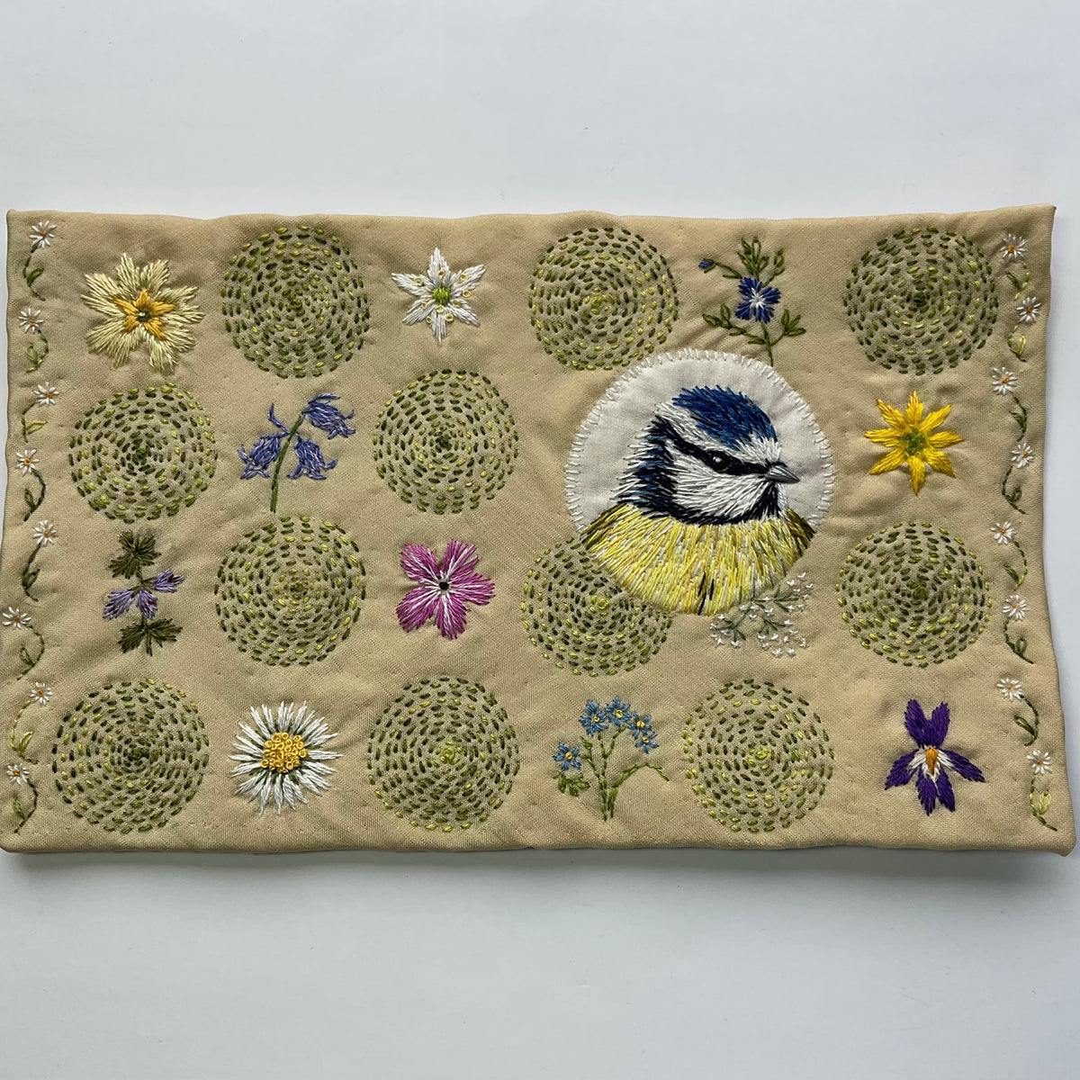 My work is inspired by the natural world. I specialise in meticulous hand embroidery. I keep nature journal sketchbooks to record my observations. I only work on things I have seen, so the work is personal and tells a story of those quiet moments in the Gloucestershire countryside. I make pictures, little concertina sketchbooks, covered cotton reels, pincushions and cards. You can follow my process on my Instagram posts.