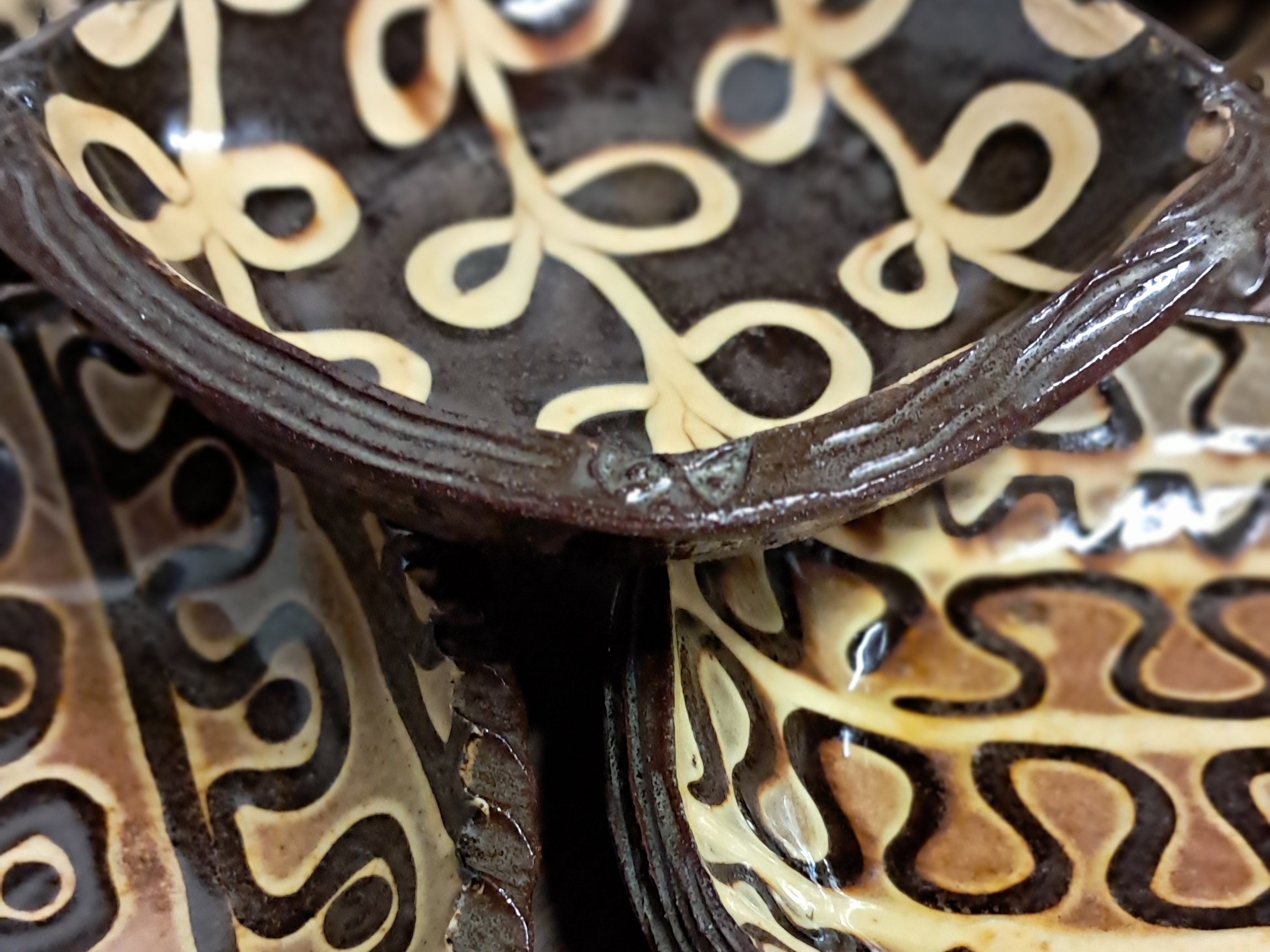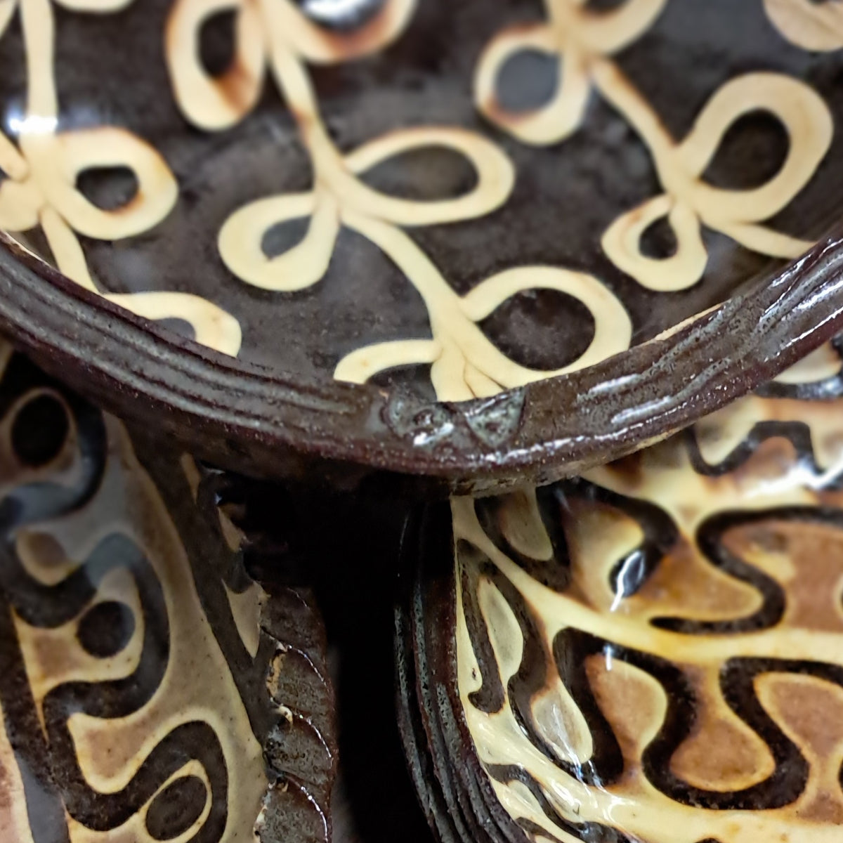 I returned to making slipware pots in March 2024 from my own workshop in Evesham. My pots are made to be used in the home, a celebration and enhancement of the table. When I first started making pots it didn’t take long for me to realise that I had a true passion for traditional slipware pottery, especially old, functional country pottery. I make ceramics that have roots in historic pottery and also sit within the Leach tradition, pots that have contemporary uses in today’s home. My work is mostly thrown from red earthenware clay and decorated using clay slips with warm honey coloured glazes.