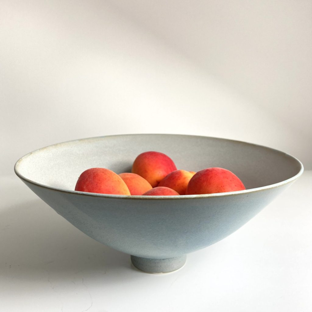 I relish exploring a palette of serene glaze colours and textures, a variety of surfaces to complement the restrained forms. This is an ongoing process; I find the thrill of experiment and discovery one of the greatest rewards in making.
