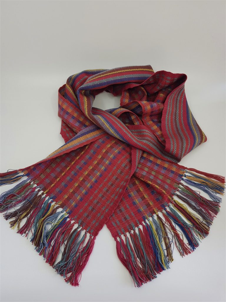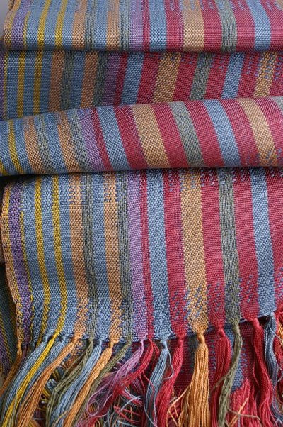 I graduated from my textile design course in 1980 and have been weaving almost continually since then. I still find great pleasure in the making of cloth. It is the basic simplicity that I enjoy – the interlacing of two sets of threads (the warp and weft) to form the soft fluidity of a scarf or the firmness and durability required to produce upholstery fabric.