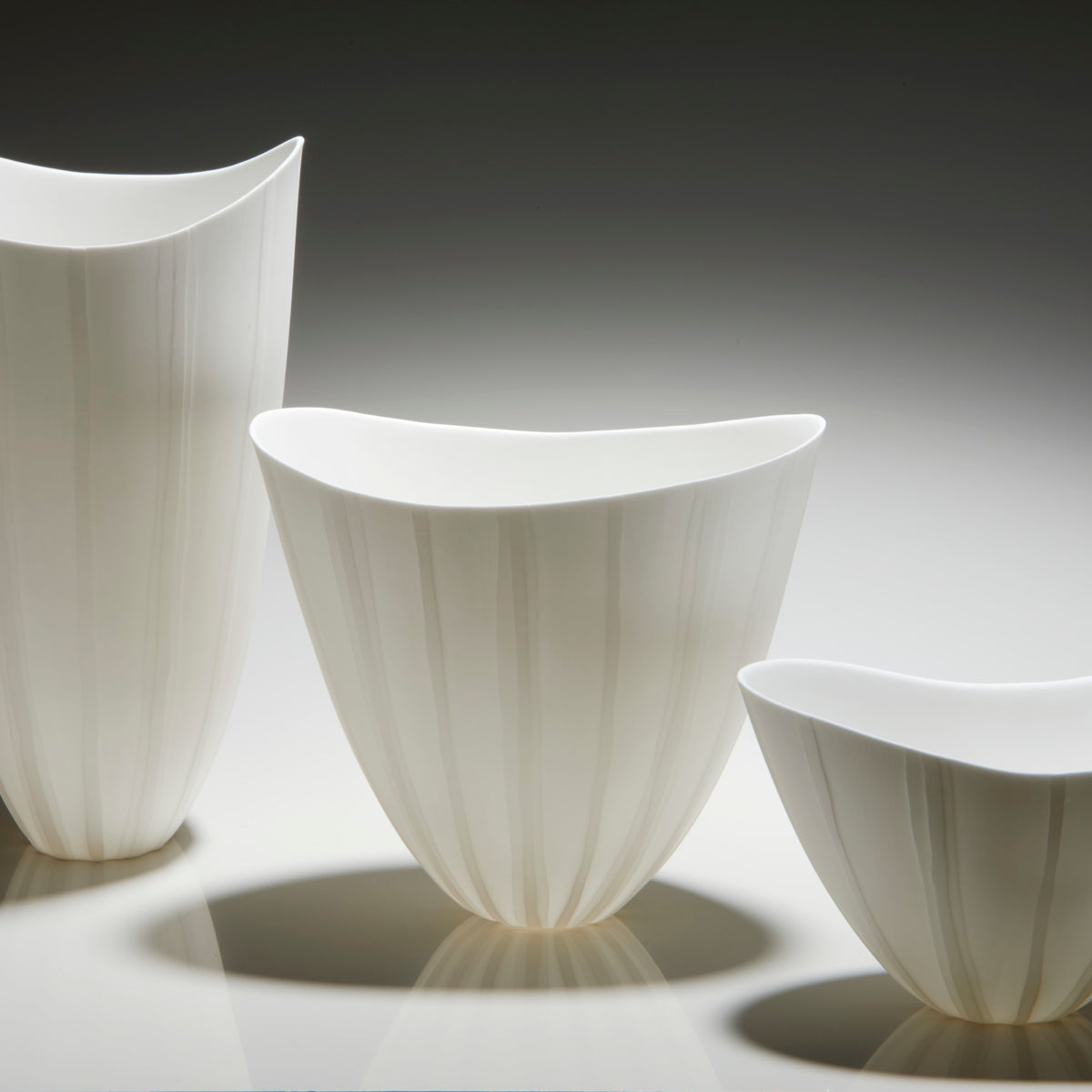 Taking elements of this industry and adapting them to a studio environment I have concentrated on perfecting the craft-based skills which enhance the inherent qualities of bone china with my own production which includes bespoke vases, bowls, lighting and tea ware. All of which are individually decorated.