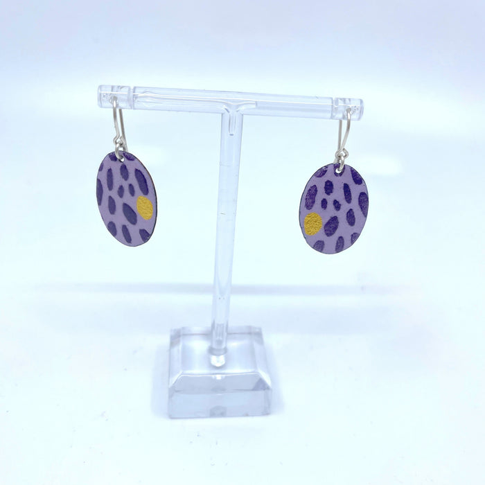 Purple with gold copper enamel oval earrings (HSL43BP)