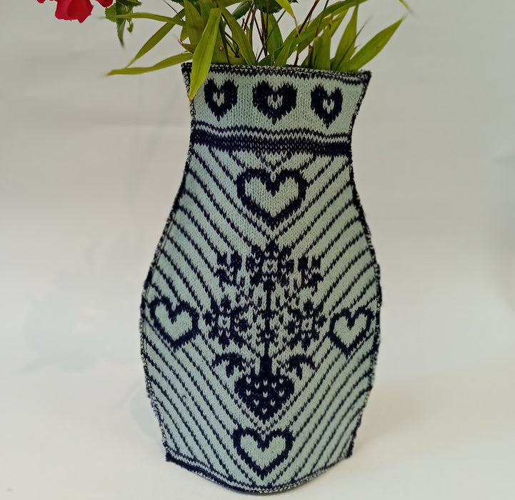 Pop this cover round any any pot, jar or plastic container to create a vase that is easy to store flat.